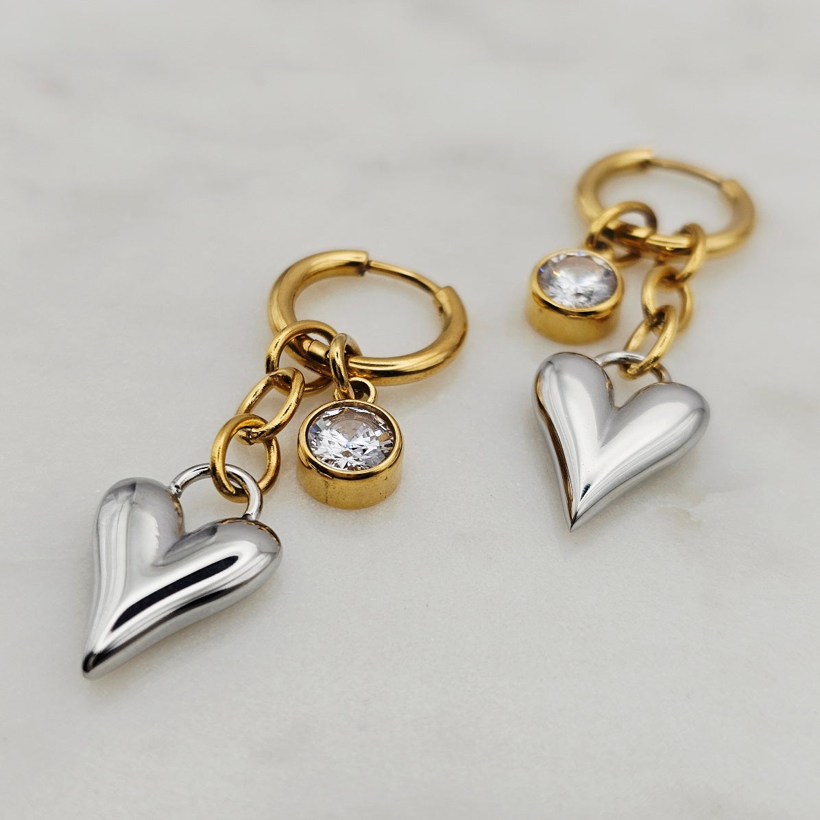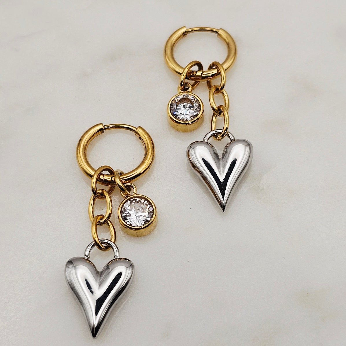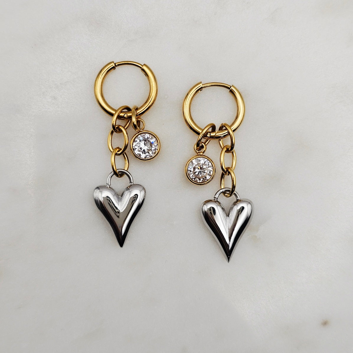 Two Tone Heart Dangle Earrings