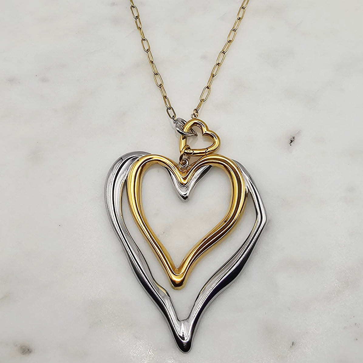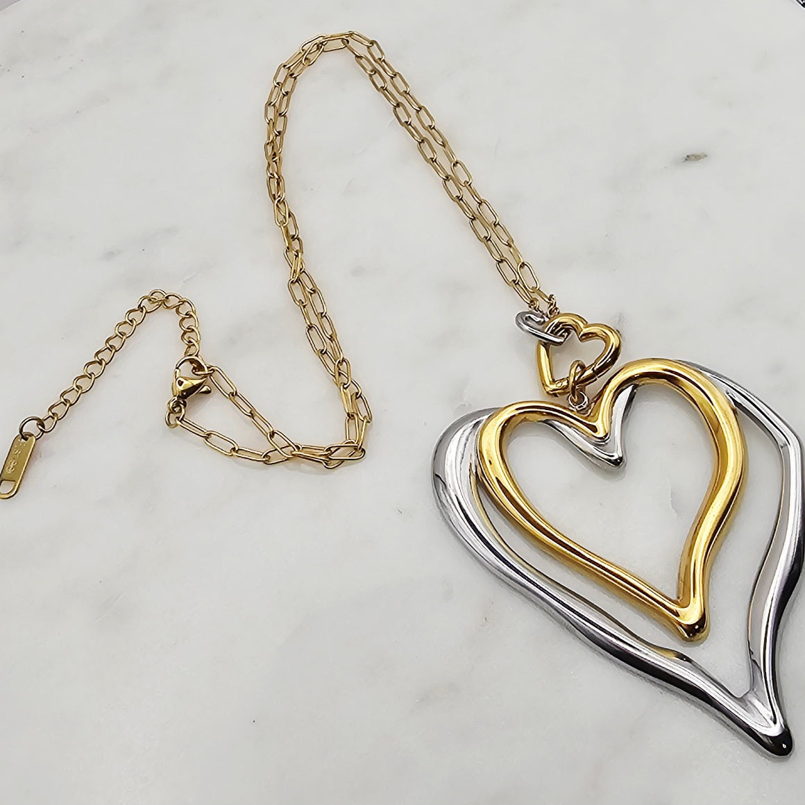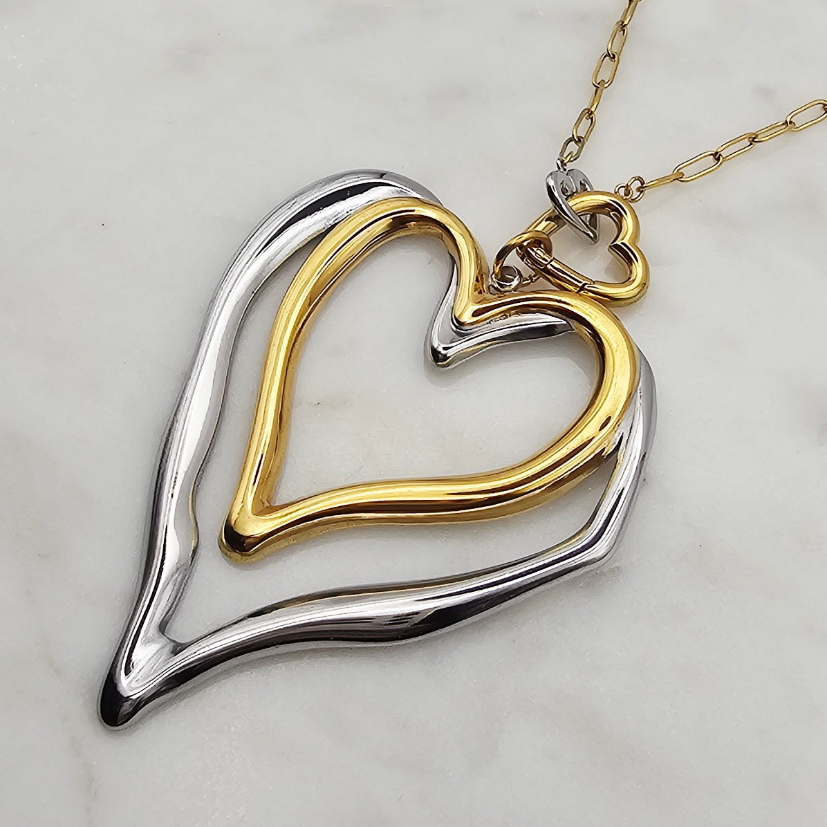Two Tone Double Heart Necklace
