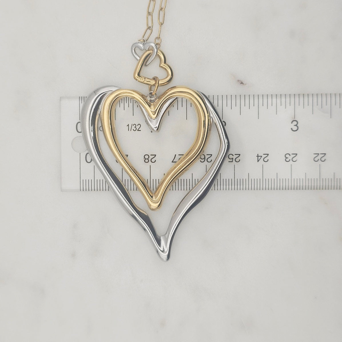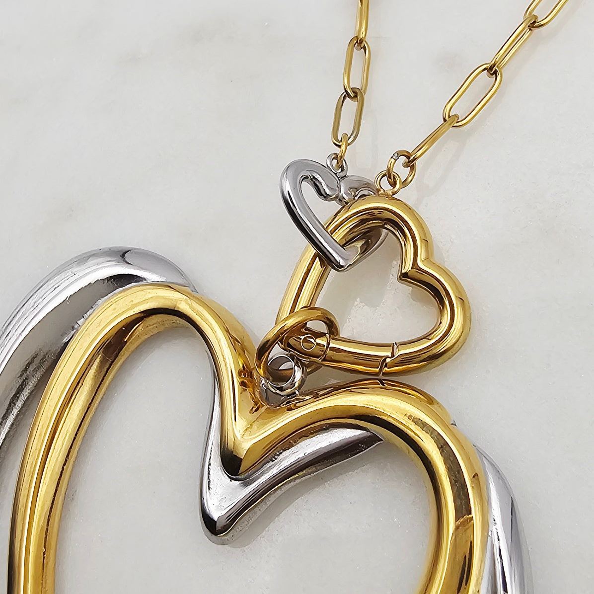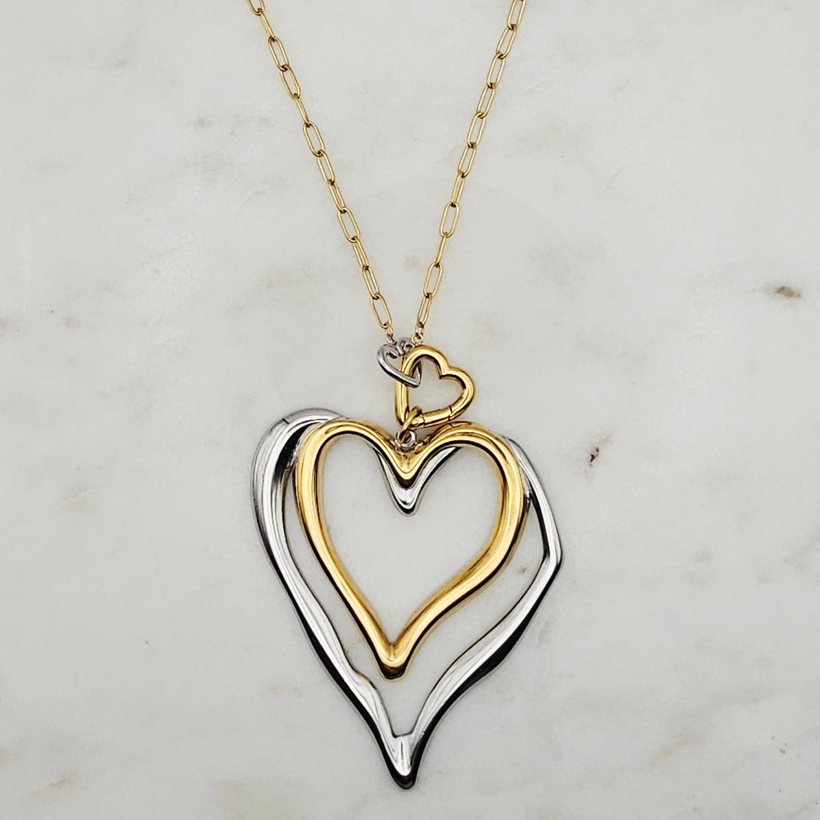 Two Tone Double Heart Necklace